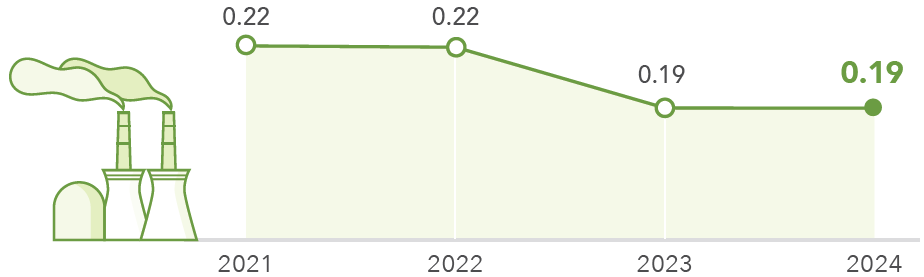 2024年空氣污染排放總量較前一年減少11%,單位產量空氣污染排放量較前一年度持平,持續加強空氣污染排放防制效率,強化空污防制設備監測。