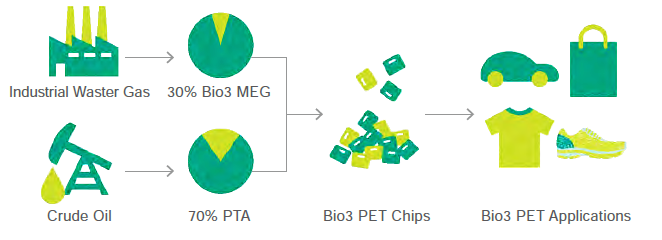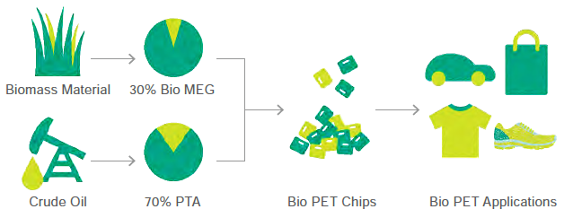 FENC, as the global leader in bio-based polyester, has successfully developed the world's first PET bottle using 100% bio-based materials and the world's first batch of 100% bio PET apparel, leveraging its 40 years of accumulated polyester synthesis technology. FENC® TOPGREEN® Bio PET, the company' s bio PET product, contains 30% bio-based ethylene glycol (bio MEG) and 70% terephthalic acid (PTA) from petrochemical raw materials. After several years of research and development, bio MEG has become economically viable, with raw materials sourced from non-food grade plants, to avoid competition with food sources and at the same time reduce dependence on petroleum.