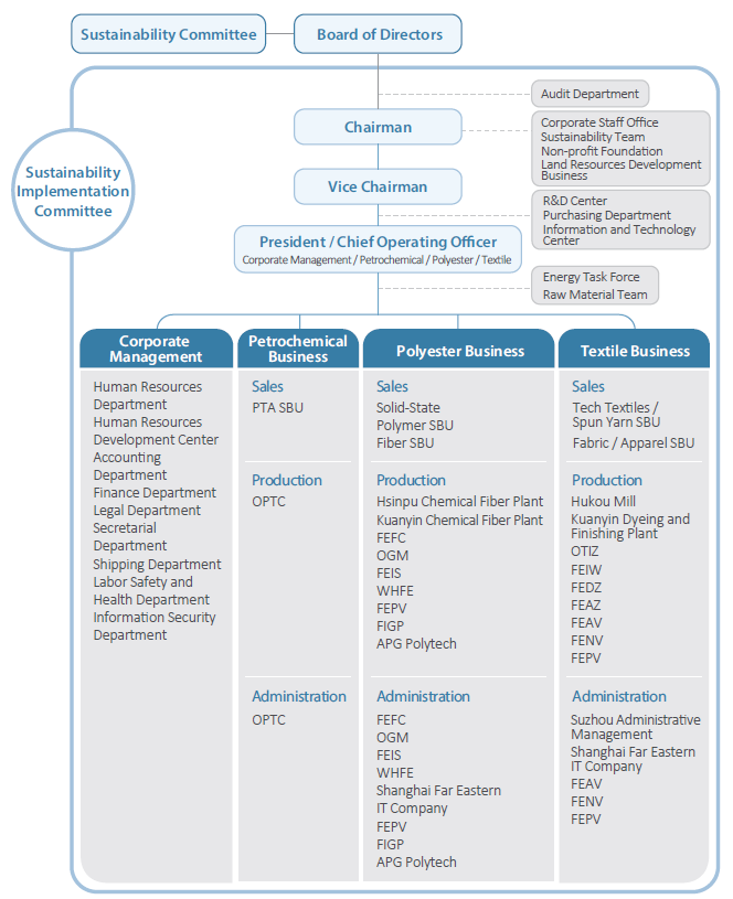 FENC stays current on sustainability issues and makes policy adjustments accordingly, with related affairs carried out through Sustainability Implementation Committee.