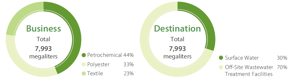 Note: 1.FENC does not discharge effluent directly to the seawater or groundwater / well water. Please refer to the table, Effluent Treatment Methods and Final Discharge Destination. 2.The boundary of data collection for effluent discharge per unit of production for the Textile Business does not include FEAZ, FENV and FEAV. |