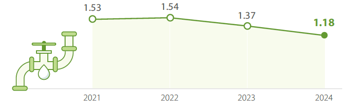 The total effluent is down by 18% in 2024 compared with the previous year, and the effluent per unit of production is cut by 14%. The Company will install additional effluent recycling and reuse systems to increase water efficiency per unit of production.