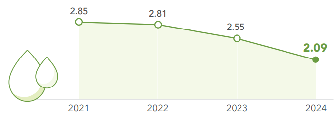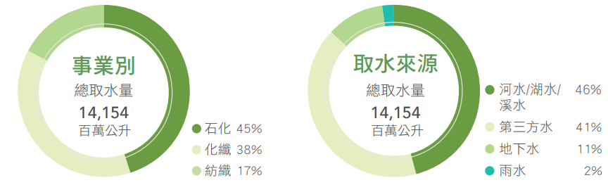 河水/湖水/溪水 | 第三方水 | 地下水 | 雨水 | 總取水量 | 總耗水量 | 單位產量取水量 | ||