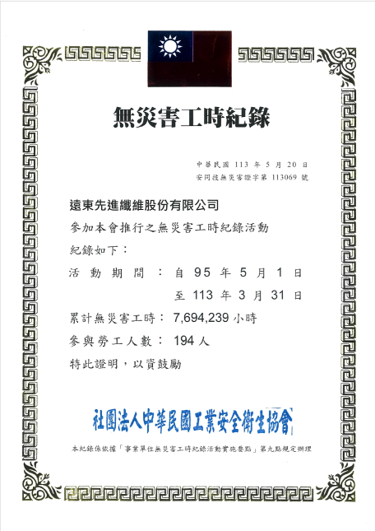 Since its inception in April 1997, FEFC has maintained a 27-year record of zero lost days due to disabling occupational injuries. As of December 2024, the plant had accumulated 10.91 million hours without disabling occupational injuries. The plant has also been participating in the zero-accident campaign held by the Industrial Safety and Health Association since 2006 with 7,694,239 accident-free working hours registered and verified.