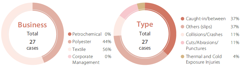 The 2024 statistics on occupational injuries at FENC production sites have been analyzed and compared by industry with the 2023 occupational disabling injury frequency rate and disabling injury severity rate compiled by the Occupational Safety and Health Administration in Taiwan. Both rates from FENC’s Petrochemical, Polyester and Textile Businesses are lower than those from the industry peers.
